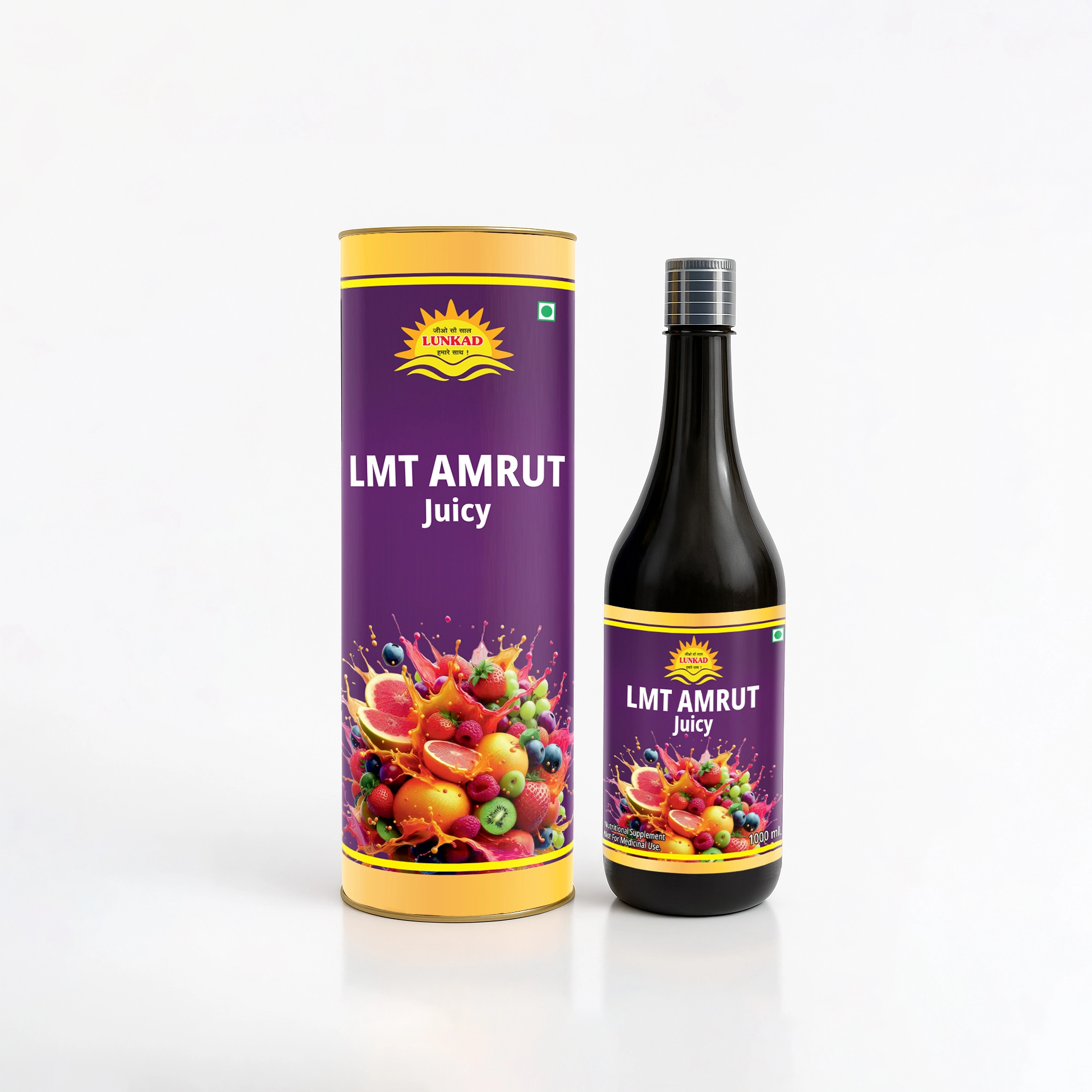 LMT Amrut Juicy by Lunkad Ayurveda is a vibrant, delicious health tonic made from a diverse blend of over 100 fruits, berries, and herbs including Acai, Blueberry, Goji Berry, Amla, Tulsi, and many more. This unique formulation is rich in natural antioxidants, essential vitamins, and minerals, supporting overall vitality and wellness. Enriched with Vitamin C, B-complex, and D3, it’s a flavorful way to energize your daily routine and nourish your body.