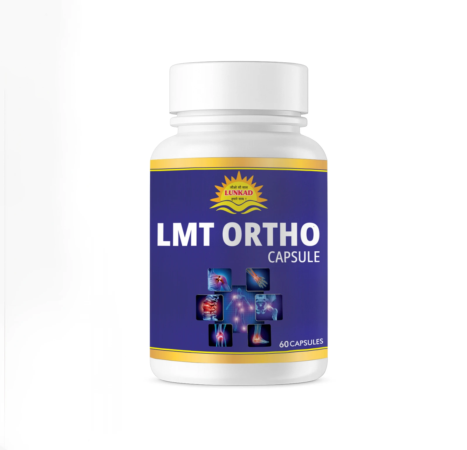 LMT ORTHO Capsules by Lunkad are formulated using a synergistic blend of time-tested Ayurvedic herbs known to support joint comfort and mobility. Combining powerful botanical extracts like Boswellia (Salai Guggul), Harad, Amla, and Turmeric, this herbal supplement is crafted to provide natural support for stiff joints and general discomfort.Developed for individuals seeking a traditional, plant-based approach to joint wellness, this formula can be incorporated into your daily health routine. LMT ORTHO comes in a 60-capsule bottle, designed for twice-daily use or as recommended by a healthcare practitioner.