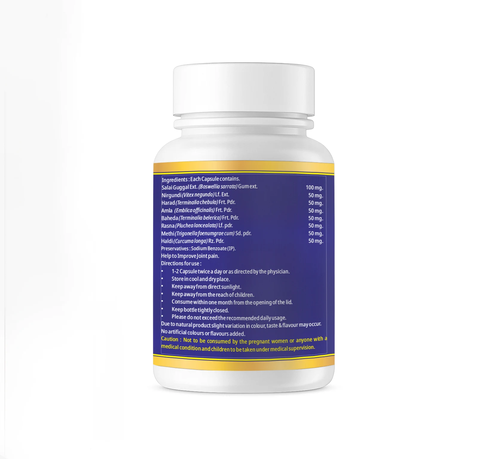 • Ayurvedic Herbal Blend: Contains Boswellia, Harad, Amla, Baheda, and more — traditionally used to support joint function and flexibility.