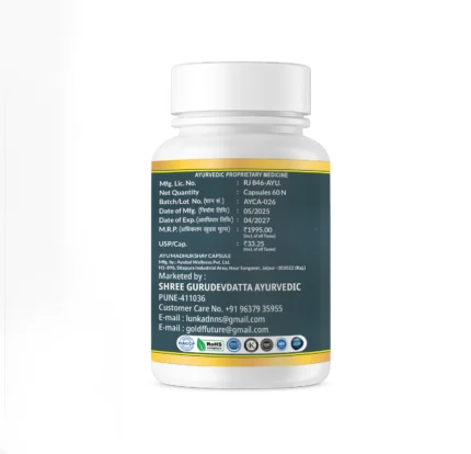 LMT MADHOO Capsules by Lunkad Ayurveda is a proprietary Ayurvedic formulation crafted with traditional herbs known to support healthy blood sugar levels. Made with time-tested botanical ingredients, this herbal supplement may help promote overall metabolic wellness and energy. Designed for daily use, it fits naturally into your wellness routine without harsh chemicals or additives.